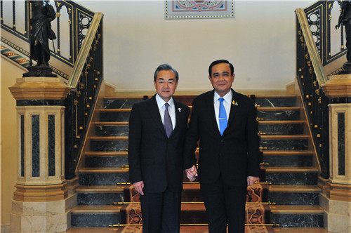 王毅向巴育转达了中国领导人的亲切问候,祝贺巴育连任并组建新一届政府。王毅表示,中泰有着传统友好情谊,中泰“一家亲”深入人心。两国共建“一带一路”成效显著,不仅为两国人民带来切实利益,也助益地区联通和发展。中泰要密切高层往来,开展包括扶贫等治国理政经验交流,深化发展战略对接,不断扩大贸易规模,打造创新、人工智能等新的合作增长点,携手开拓第三方市场。中方愿扩大进口更多泰优质农产品,推动两国全面战略合作伙伴关系提质升级。泰国是今年东盟轮值主席国,中方全力支持泰方履行好职责,开好本次东亚合作系列会议。