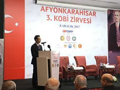 2017年12月8日,应土耳其中小企业家协会的邀请,驻土耳其大使郁红阳赴阿菲永卡拉希萨尔出席第三届中小企业家协会峰会并致辞。土耳其森林与水资源部长维伊塞尔·埃尔奥卢、阿菲永卡拉希萨尔省长穆斯塔法·图徒尔马兹、商会会长、中小企业家协会会长及中小企业的300余名代表出席本次活动。