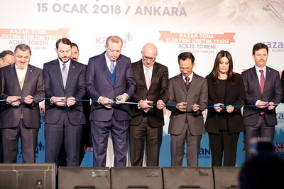 2018年1月15日,驻土耳其大使郁红阳应邀出席土耳其卡赞天然碱综合开发项目竣工典礼。土耳其总统埃尔多安、能源部长阿尔巴依拉克出席活动并致辞。土劳动和社会保障部长萨若埃尔奥卢、安卡拉省长托帕扎、安卡拉市长图纳等出席活动。中国化学工程集团有限公司副总裁刘家强、中国天辰工程有限公司总经理袁学民、土耳其吉耐尔集团董事长图尔盖﹒吉耐尔等出席典礼。
