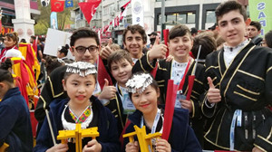 2018年4月23日,驻伊斯坦布尔总领事崔巍出席伊斯坦布尔萨勒耶尔区举办的土耳其国家主权日和儿童节联欢活动闭幕式。浙江金华春苗绿芽艺术团小朋友与土耳其以及来自“一带一路”沿线10个国家儿童艺术团体同台献艺,表演了各具特色的精彩节目。