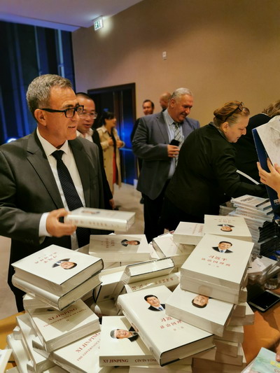 招待会现场气氛热烈,巨幅中国国旗、大红灯笼、中国结、“福”字、熊猫玩具迎宾台和真人装扮的熊猫玩偶,营造了一个原汁原味的中国空间。在文创品展区,专门设立了《习近平谈治国理政》第一、二卷(中、英、土文)展台,还摆放了有关中土关系、中国传统文化、经济发展、生态文明建设、风土人情、美食等2000多份DVD光盘、书籍,都受到来宾的热烈欢迎,最终被一扫而空。“庆祝中华人民共和国成立70周年”主题图片展吸引了来宾驻足观看。在场内,液晶大屏幕滚动播放了《追梦人:中国2019》《美丽中国》等国庆主题宣传大片,还播放了《中国日报》客户端精心制作的《见证70年》系列微视频,以小人物、小故事展示70年辉煌成就的大主题、大时代。