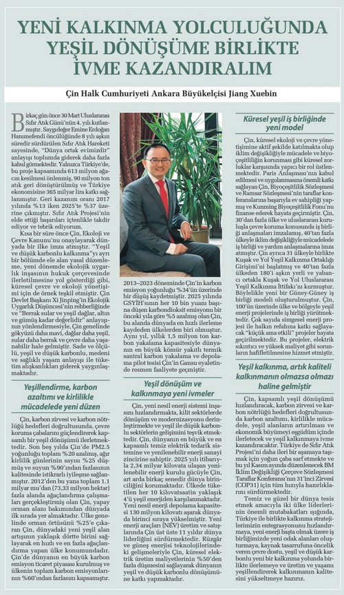 2026年4月2日,驻土耳其大使姜学斌在土主流媒体《晨报》发表署名文章《在新发展征程中携手跑出绿色加速度》,全文如下: