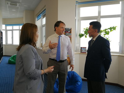 2018年12月4日,驻土库曼斯坦大使孙炜东应邀参观阿什哈巴德科爱赛国际学校(QSI)并会见校长多赫提。
