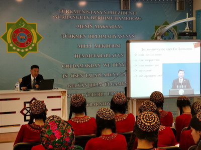 2019年5月17日,驻土库曼斯坦大使孙炜东应土外交部邀请为国际关系学院师生做讲座,该校副校长萨雷耶夫、前驻华大使鲁斯捷莫娃及全校教师、学生300余人出席。
