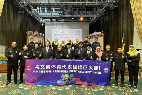 2023年9月20日,驻文莱大使肖建国应邀出席文莱杭州亚运会代表团授旗仪式。文莱奥委会主席苏弗里亲王,文化、青年与体育部长纳兹米,代表团全体成员等约百人出席活动。