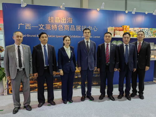 随后,肖大使与广西壮族自治区政府办公厅副主任刘国晔带队的广西代表团一行共同巡馆,参观广西—文莱特色商品展销中心,在广西北部湾摩拉港公司展区观看企业宣传视频,还与中国银行、恒逸、葫芦岛钢铁、中国外运等参展中资企业进行交谈,表示博览会为东增区与其他地区企业搭建了交流平台,希望通过此次展会达成更多合作成果,为推动中国—东盟东增区经贸关系的进一步发展作出贡献。