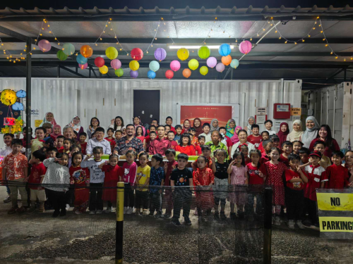 肖大使同来宾共同欣赏小朋友们带来的精彩表演,向学校全体师生致以节日问候。肖大使赞赏中岭学校多年来克服困难坚持办学,体现了对华文教育与文化传承的坚守。他表示,使馆将继续支持中岭学校等文莱各华校发展,期待学生们努力学习,深入了解中国语言和文化,争做服务文莱发展、赓续中文友好事业的栋梁之材。