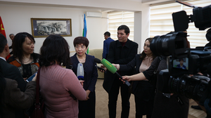 姜岩大使向全体人员祝贺春节,高度评价59中为普及汉语教学作出的贡献,表示该校自1957年起设立汉语课,开中亚地区中学汉语教学先河;以盖素娥、董富华为代表的优秀汉语教师辛勤耕耘,培养了大批汉语人才;希望学校坚持做好汉语教学及优秀中华文化传播工作,为两国关系发展作出新贡献。