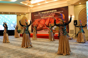 乌方艺术家和在场维吾尔族侨胞代表表演了歌曲、舞蹈等精彩节目。各位来宾一同载歌载舞,沐浴在节日的喜庆气氛之中。