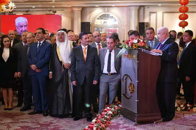2019年9月23日,驻叙利亚使馆在大马士革举办招待会,隆重庆祝中华人民共和国成立70周年华诞。叙副总统阿塔尔、叙复兴党副总书记希拉勒、议长萨巴格、副总理兼外长穆阿利姆、总统事务部长曼苏尔、总统政治与新闻顾问夏班、地方管理、经贸、新闻等部长、大马士革省等省长、叙军副总参谋长萨利赫等叙军代表、驻叙使节、国际组织代表,社会各界友人,叙主流媒体,在叙中资机构、华侨华人代表等550余人出席。