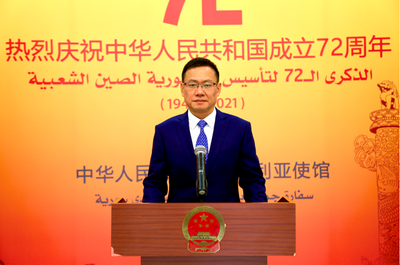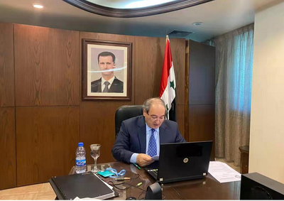2021年9月19日,驻叙利亚大使冯飚在驻叙使馆举办线上招待会,庆祝中华人民共和国成立72周年。叙利亚外长米格达德视频出席并发表致辞。