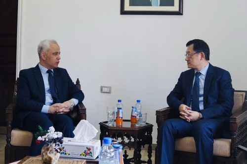 2023年5月15日,驻叙利亚大使史宏微拜会叙利亚通讯与技术部长伊亚德·穆罕默德·赫提卜,双方就中叙通讯合作交换意见。