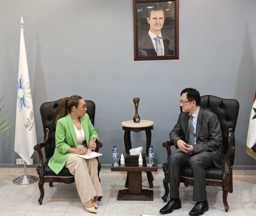 2023年7月26日,驻叙利亚大使史宏微拜会叙行政发展部长萨拉姆·萨法芙,双方就进一步深化两国务实合作交换意见。