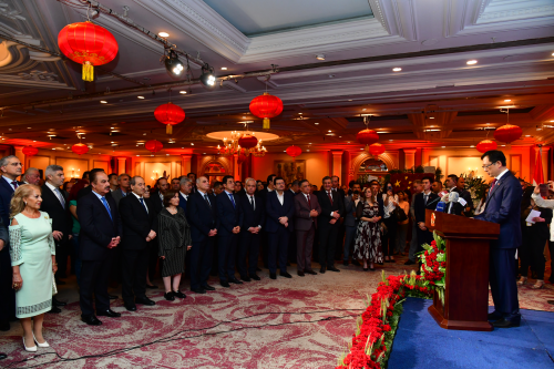 2023年9月10日,驻叙利亚使馆在大马士革举行招待会,隆重庆祝中华人民共和国成立74周年,驻叙利亚大使史宏微出席招待会。叙复兴党副总书记希拉勒、外长米格达德、总统特别顾问夏班及人民议会副议长、通讯、卫生、新闻、教育部长、大马士革省省长等党政军高官,各国驻叙使节及国际组织代表,在叙中资机构和华侨华人代表等400余人出席。