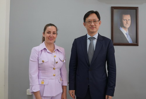2023年11月2日,驻叙利亚大使史宏微会见叙卓越与创新机构主席哈拉,就中叙关系、青年领域合作等议题交换意见。