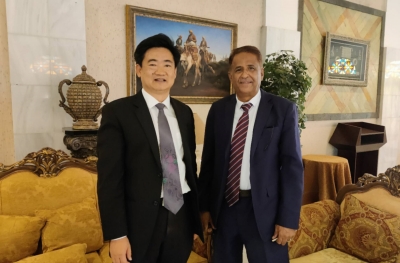 2023年8月16日,驻也门使馆临时代办邵峥在也门外交部拜会也门外交和侨民事务部部长办公室主任卡迪尔。