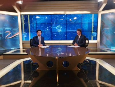 2023年8月28日,驻也门使馆临时代办邵峥做客也门电视台,接受该台《专访》栏目直播采访,重点介绍金砖国家领导人第十五次会晤有关情况,并就中也关系等问题回答提问。