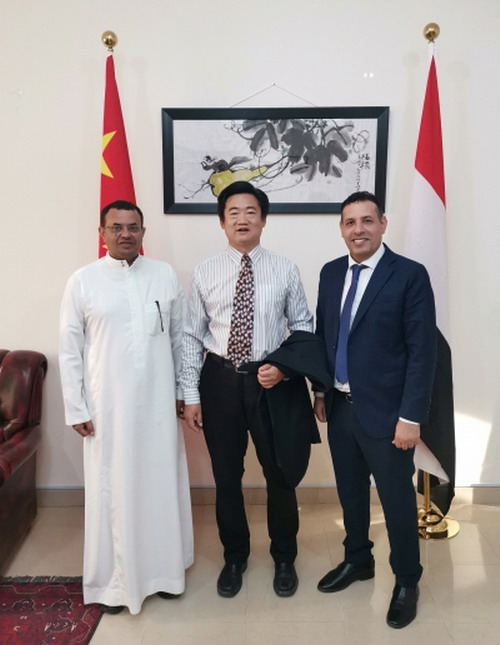 2023年10月27日,驻也门使馆临时代办邵峥在使馆会见也门记者联盟对外事务负责人亚西尔和媒体事务负责人哈扎阿,围绕中也关系、也门局势等进行交流。