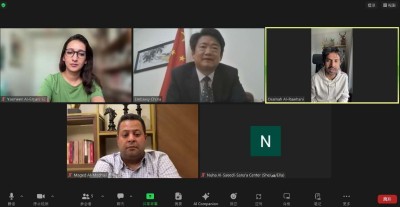 2025年5月5日,驻也门使馆临时代办邵峥在利雅得视频会见也门萨那战略研究中心负责人马吉德等。