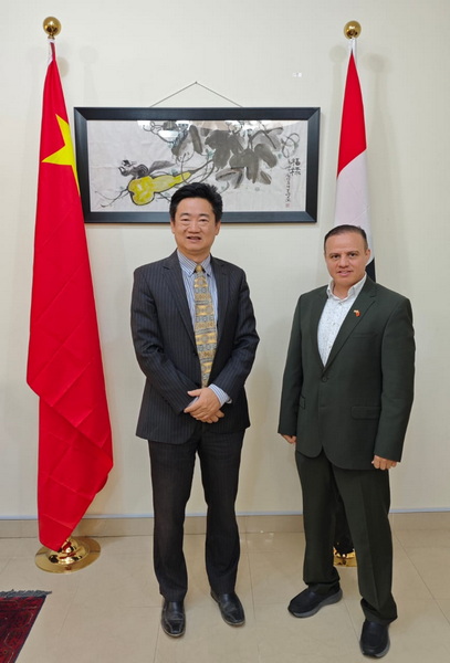 2025年11月10日,驻也门使馆临时代办邵峥在利雅得会见也门萨巴卫星电视台台长哈立德,围绕中也关系、也门及地区局势等进行深入交流。