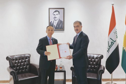 2023年10月4日,驻埃尔比勒总领事刘军到任拜会伊拉克库尔德地区政府对外关系部部长萨菲·迪兹耶并递交领事任命书副本。