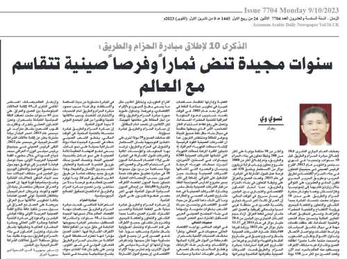 驻伊拉克大使崔巍在伊《时代报》发表署名文章《共建“一带一路”倡议十周年:辉煌十年硕果累累,中国机遇世界共享》