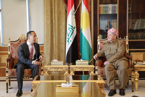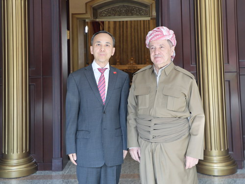 2023年11月1日,驻埃尔比勒总领事刘军到任拜会伊拉克库尔德斯坦民主党(库民党)主席马苏德·巴尔扎尼。
