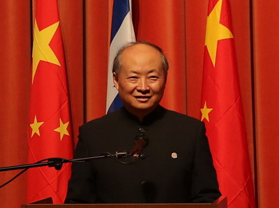 再过四天,我们将迎来中国的农历新年,鸡年象征着吉祥、希望和欢乐。请允许我借此机会祝愿各位来宾身体健康,万事如意!祝愿中以双边合作取得更大成就!