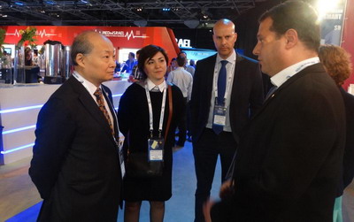 在以色列出口和国际合作协会负责人陪同下,詹大使参观了本届医疗器械展,并与参展企业就产品特点、应用前景等方面进行了交流。
