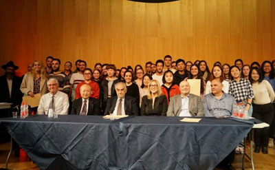 詹大使还同克莱恩等一道向近百名中以学生颁发奖学金,共同见证犹太传统节日光明节燃烛仪式,并欣赏了当地艺术家演唱的歌曲。