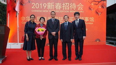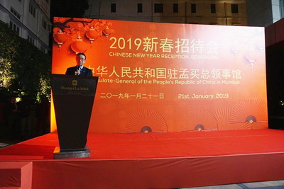 2019年1月21日,驻孟买总领馆举办2019班加罗尔新春招待会。驻孟买总领事唐国才和班加罗尔华侨华人、留学生及中资企业代表300余人欢聚一堂,共庆乙亥猪年新春。卡邦工贸部主秘古普塔、印中友协秘书长兼卡邦分会负责人巴斯卡兰等印地方官员和友人受邀参加活动。