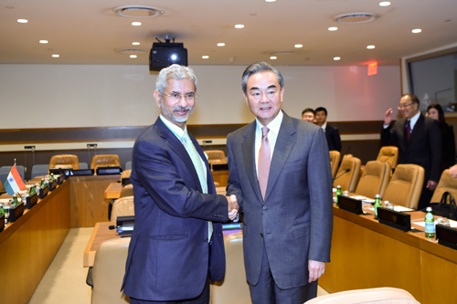 当地时间2019年9月25日,国务委员兼外长王毅在纽约出席联合国大会期间会见印度外长苏杰生。