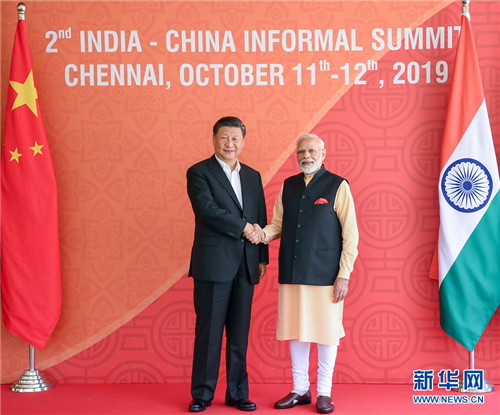 当地时间2019年10月12日,国家主席习近平在金奈同印度总理莫迪继续举行会晤,两国领导人在友好、轻松气氛中就中印关系和共同关心的重大国际和地区问题坦诚、深入交换意见。