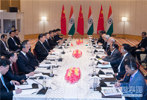 习近平指出,去年我和总理先生在武汉成功会晤以来,中印关系迈入健康稳定发展新阶段,会晤的积极效应不断显现。中印互为重要邻国,是仅有的两个人口超过10亿的大国。维护好、发展好中印关系,是中国坚定不移的政策。当前国际形势下,中印在维护全球稳定和推动发展方面肩负着越来越重要的责任。未来几年是中印实现民族复兴的关键期,也是中印关系发展的关键期。我们要对中印关系把舵定向,从战略高度和长远角度规划中印关系百年大计,为中印关系发展注入强劲内生动力,携手实现中印两大文明伟大复兴。