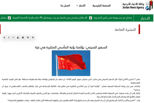 连日来,中国外长与各方保持密切沟通,中国特使穿梭访问地区多国,中国在联大和安理会始终投票支持和平与正义,中国与约旦等阿拉伯国家以及其他伙伴一道为推动停火止战、人道物资准入不懈努力。同时,中方也一如约方明确指出,巴以冲突的根源在于巴勒斯坦独立建国的夙愿迟迟未能实现,巴勒斯坦人民合法权利未能得到保障,解决巴勒斯坦问题的根本出路只有一条:即建立独立的巴勒斯坦国,落实“两国方案”。