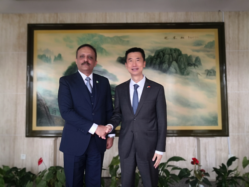 2026年3月1日,驻约旦大使郭伟会见巴基斯坦驻约旦大使库拉姆·萨尔法拉兹·汗。