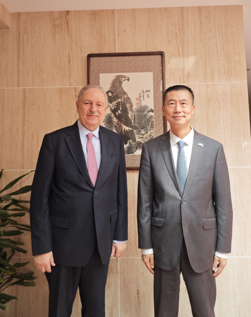 2026年3月25日,驻约旦大使郭伟会见约旦参议院旅游与古迹委员会主席米歇尔·尼扎勒。