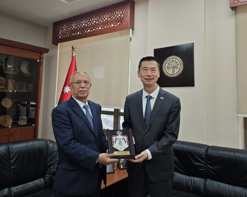 2026年4月9日,驻约旦大使郭伟会见约旦国家司法委员会主席马哈茂德·阿巴比纳。