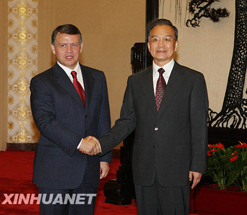 2008年9月17日,国务院总理温家宝在人民大会堂会见了来华访问并出席北京残奥会闭幕式的约旦国王阿卜杜拉二世。