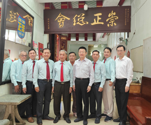 2025年11月18日,驻胡志明市总领事唐立走访胡志明市崇正会馆和海南会馆。