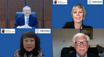中欧投资协定意义重大。不久前,包括中国在内的十五国联合签署了区域全面经济伙伴协定(RCEP),可以说是单边主义阴霾下多边贸易体制的重大胜利。中欧若能在年内如期达成投资协定,无疑将彰显双方在疫情重创全球背景下,携手共克时艰、助力疫后全球经济复苏和维护全球多边贸易体系的决心和意志,发出重要积极声音。投资协定如能签署,也将为双方企业进一步打开彼此市场,提高投资保护水平。这与各位企业家切身利益息息相关,让我们共同期待。