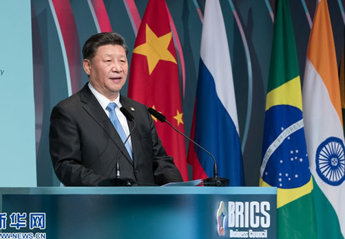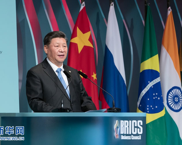 习近平指出,一段时间来,世界形势又发生许多新变化,既充满机遇,也有不少挑战。新一轮科技革命和产业变革动能逐渐释放,为生产力进步和经济社会发展开辟了新天地。同时,保护主义、霸凌主义逆流而动,冲击国际贸易和投资,加剧世界经济下行压力。企业有信心,市场就有活力。希望工商界朋友们抓住机遇,应对挑战,继续发挥各自优势,踊跃参与和推动金砖国家经济合作,积极在金砖国家投资兴业,为促进增长、创造就业作出实实在在的贡献。