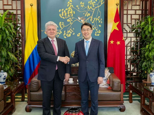 2025年11月25日,驻哥伦比亚大使朱京阳会见联合国秘书长哥伦比亚问题特别代表、联合国哥伦比亚核查团团长延恰。