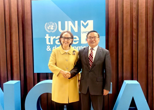 2026年1月16日,常驻联合国日内瓦办事处和瑞士其他国际组织代表、特命全权大使贾桂德到任拜会联合国贸易和发展会议秘书长格林斯潘,双方就国际经贸形势及深化合作交换意见。