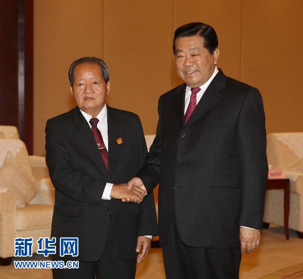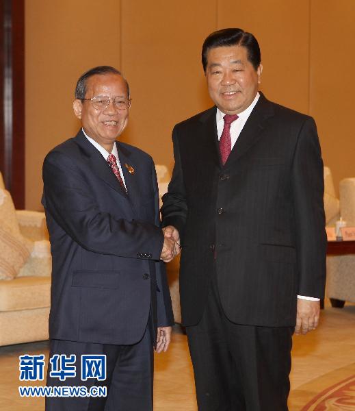 10月19日,全国政协主席贾庆林在南宁会见老挝副总理阿桑·劳里。