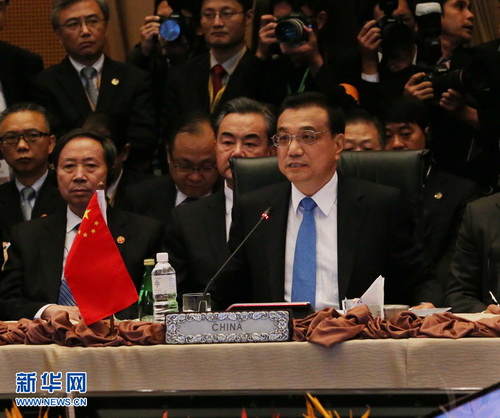 李克强在发言中说,中国和东盟关系超越双边范畴,日益成为东亚地区和平、稳定与发展的重要基石。中方始终将东盟作为周边外交优先方向,将坚定支持东盟一体化,支持东盟共同体建设,支持东盟在区域合作中的中心地位。双方要明确以增进互信夯实合作根基、融合发展促进共同繁荣、求同存异缩小分歧为发展大方向,抓住难得历史机遇,充分对接各自发展战略,提升11个国家整体发展水平,力争实现2020年建成东亚经济共同体目标,促进东亚地区永久和平与繁荣。李克强就此提出六点建议:
