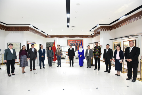 邓大使表示,上个月,王毅国务委员兼外长成功访问东盟秘书处,并特地带来一件珍贵的礼物——《千里江山图》复制品,我谨代为转交。期待这副承载着王毅国务委员兼外长访问美好记忆、象征着中国东盟深情厚谊的画作,为秘书处增添多元文化之美,为中国东盟文明交流互鉴续写华美篇章。