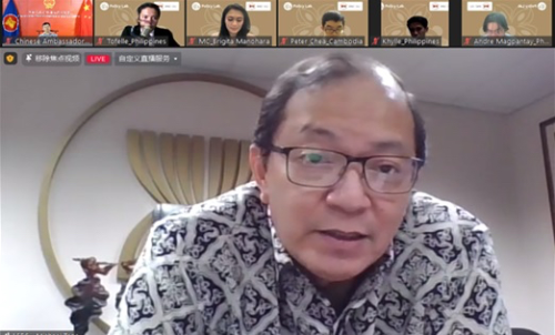 2022年10月12日至13日,驻东盟使团与印尼知名智库印尼外交政策协会(FPCI)合作以视频方式举办“推进中国东盟全面战略伙伴关系”青年研讨会。驻东盟大使邓锡军,东盟副秘书长德尼,FPCI创始人、印尼前副外长迪诺,FPCI研究员、印尼前驻孟加拉和尼泊尔大使伊万等出席活动并致辞。中国和东盟国家优秀青年代表、专家学者、媒体代表等近300人参加研讨会。研讨会开、闭幕式在网络媒体直播,逾千人次观看。