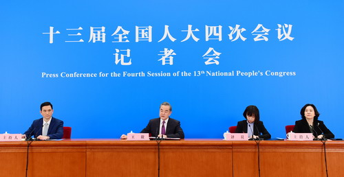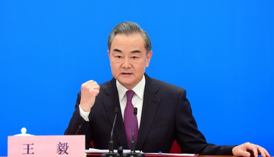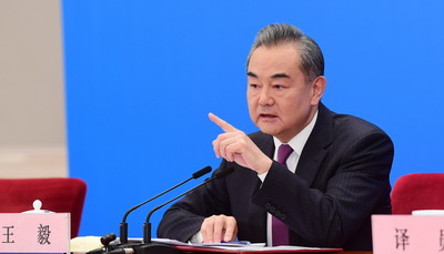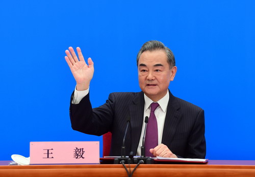 2021年3月7日,十三届全国人大四次会议在人民大会堂举行视频记者会,国务委员兼外交部长王毅就中国外交政策和对外关系回答中外记者提问。