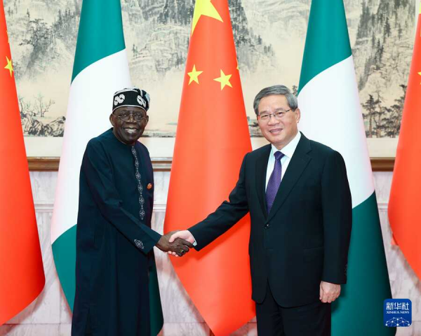 2024年9月4日上午,国务院总理李强在北京钓鱼台国宾馆会见来华出席中非合作论坛北京峰会并进行国事访问的尼日利亚总统提努布。